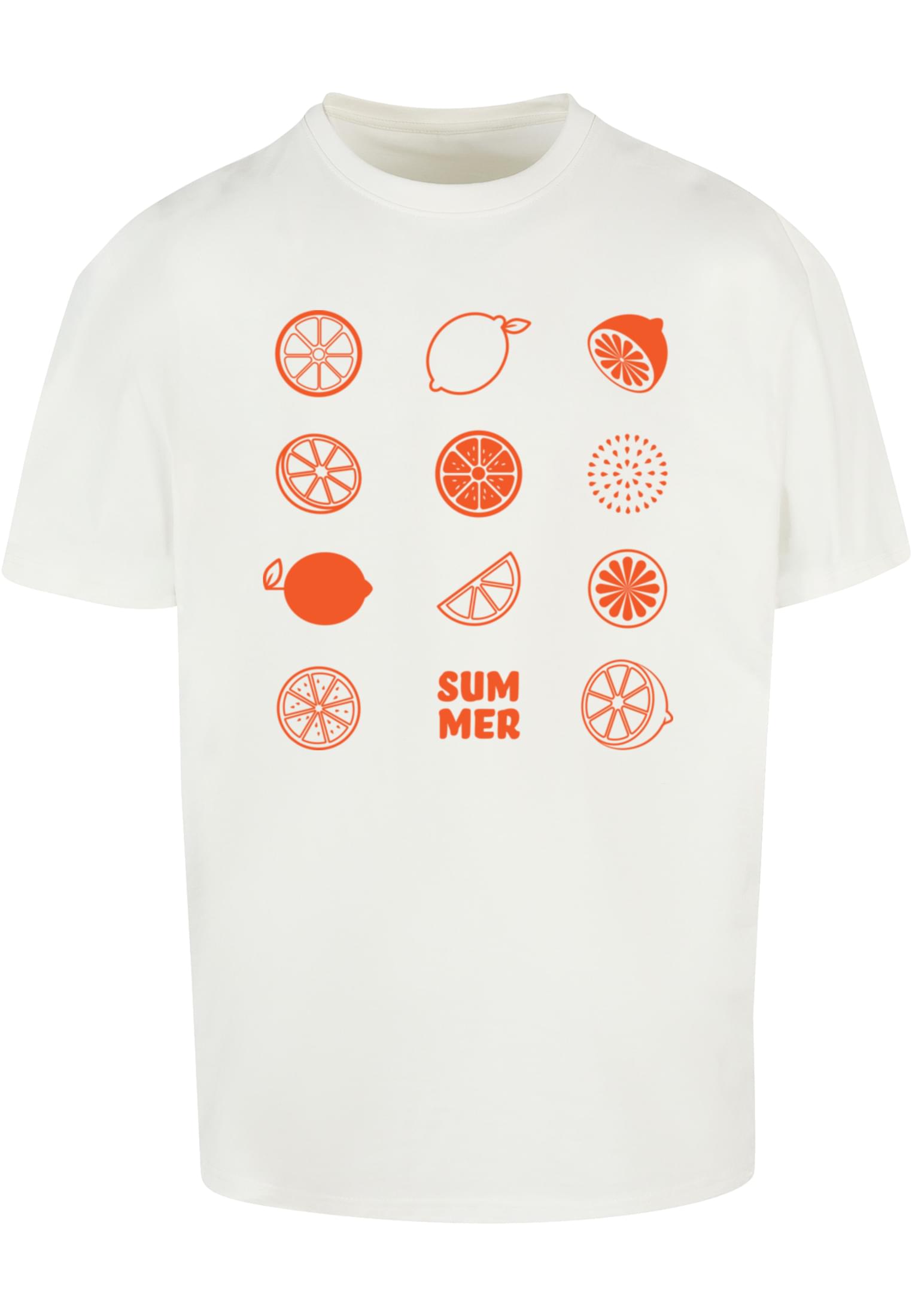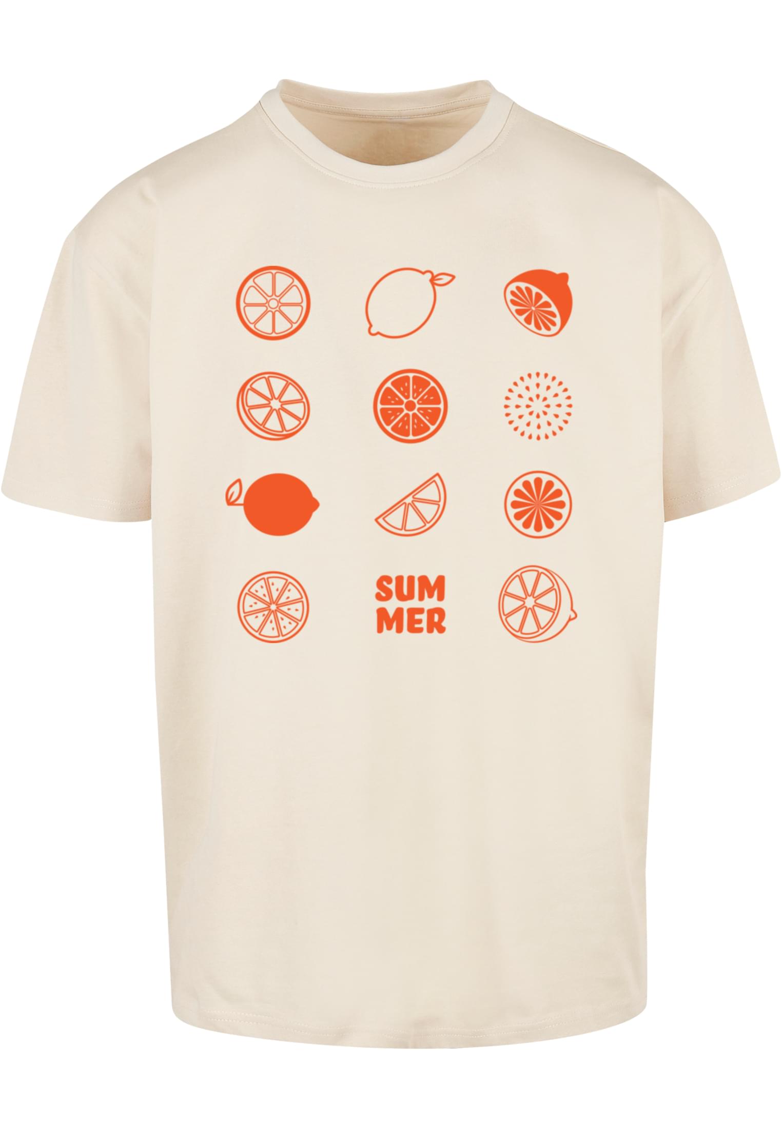 Lässiges T?Shirt für den Alltag, ideal als leichte Zwischenschicht oder casual Statement, gefertigt aus dichtem Baumwolljersey für angenehme Haptik. Der Oversize?Fit und die lange Silhouette sorgen für entspannte Proportionen, während der runde Ausschnitt und die eingesetzten Kurzärmel klassisch wirken und Bewegungsfreiheit geben. Auf der Vorderseite sorgt ein großflächiger Print mit stilisierten Fruchtmotiven und einem deutlichen Schriftzug für einen sommerlichen, grafischen Akzent, der dem Shirt Charakter verleiht. Die klare Verarbeitung und der gerade Saum machen es einfach kombinierbar mit Jeans oder Shorts für entspannte Wochenendlooks.