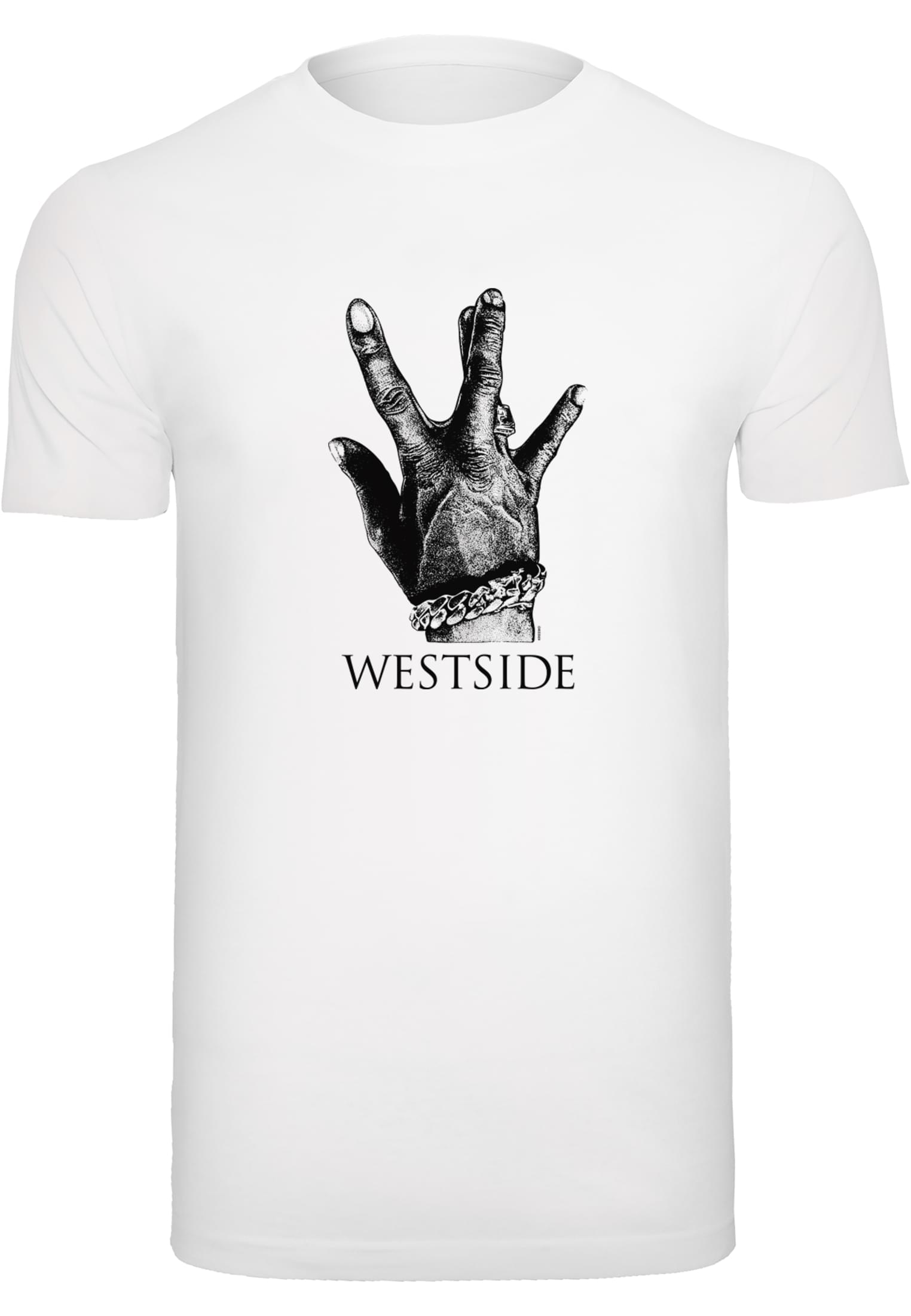 Zeig auf welcher Seite du stehst! Mit diesem coolen T-Shirt machst du klar, dass Du auf keinen Fall zur Eastside gehörst. Der Print auf der Front zeigt eine Zeichnung des legendären Gangzeichens der Westside Connection.